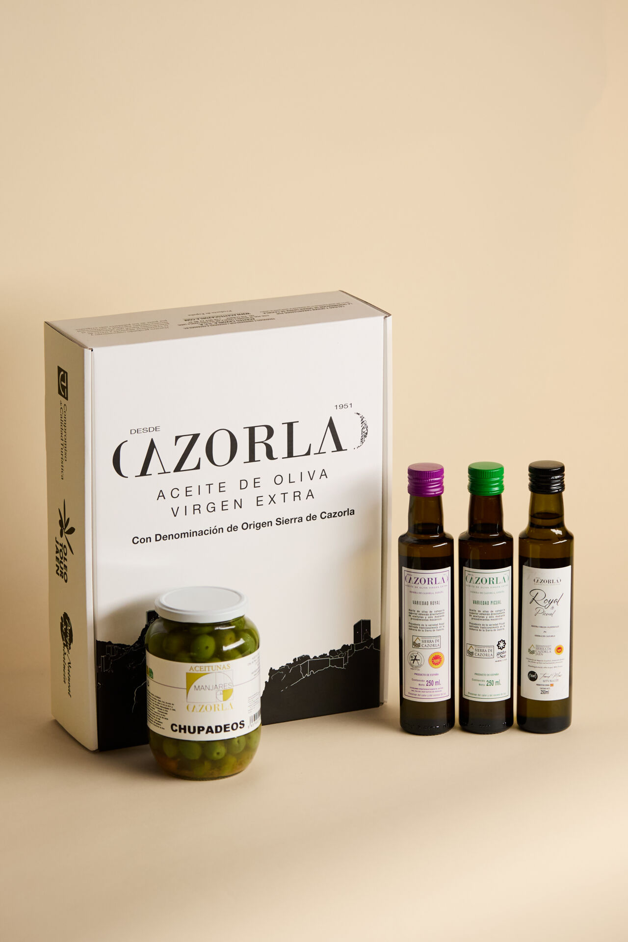 • 3 × 0,25 l Cazorla Royal, piqual og picual & royal